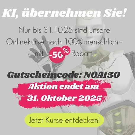 Sichern Sie sich jetzt noch 50 % Rabatt auf alle Online-Kurse mit Gutscheincode NOAI50 – nur bis 31. Oktober 2025!