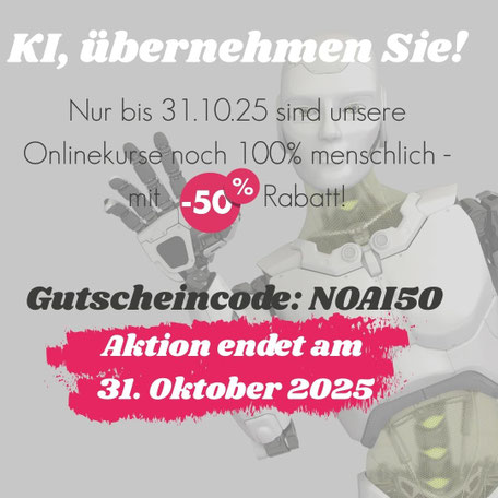 Sichern Sie sich jetzt noch 50 % Rabatt auf alle Online-Kurse mit Gutscheincode NOAI50 – nur bis 31. Oktober 2025!